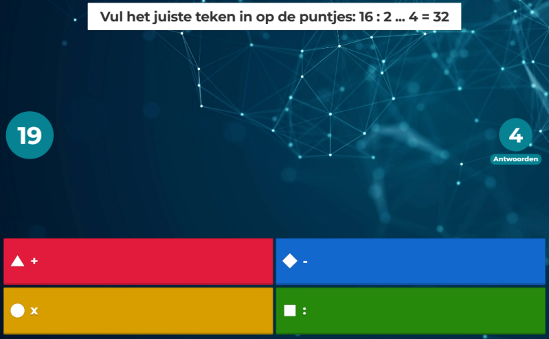 - Bij de laatste 4 vragen moet de leerling 1 van de 4 mogelijkheden aanklikken. Dit doe ik omdat sommige van deze tekens best lastig te vinden zijn op een toetsenboord voor de leerlingen. Daarnaast zijn er ook maar 4 mogelijkheden in totaal.